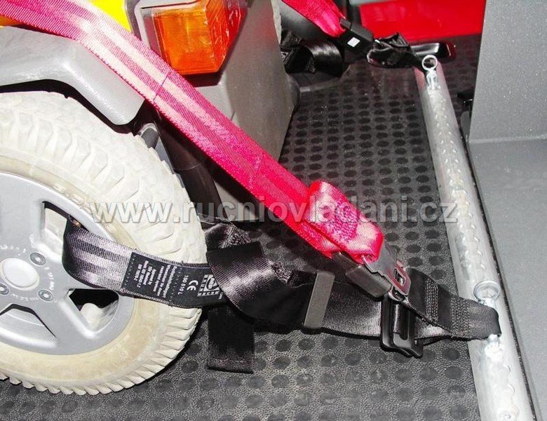 Для перевезення користувача візка, який сидить у візку, застосовуються спеціальні системи кріплення, призначені для цієї мети та такі, що відповідають усім законодавчим вимогам. Це універсальне обладнання, яке можна використовувати як для механічних, так і для електричних візків.