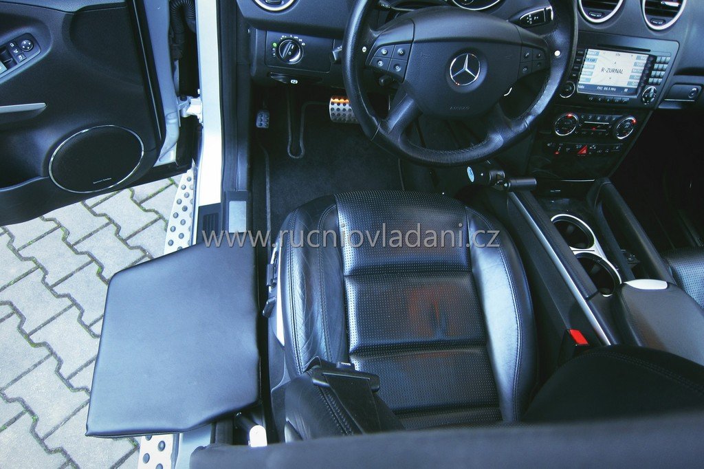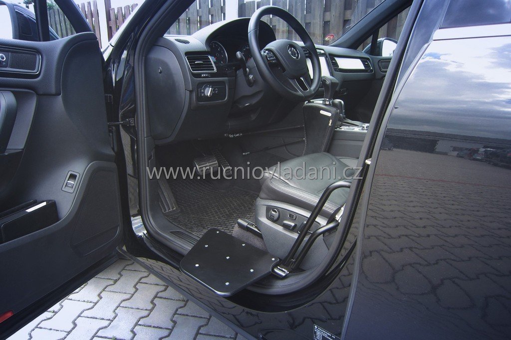 Для посадки опустіть дошку на рівень візка та пересуньтеся на неї зручним способом. Однією рукою керуєте підйомом кнопкою, зазвичай розташованою спереду на пластику, що частково забезпечує вашу стабільність, а другою рукою тримаєтеся для підтримки необхідної рівноваги під час підйому. Після пересадки на сидіння в автомобілі дошку легко витягують, піднімаючи вгору і висуваючи з механізму. Вихід здійснюється у зворотний спосіб.