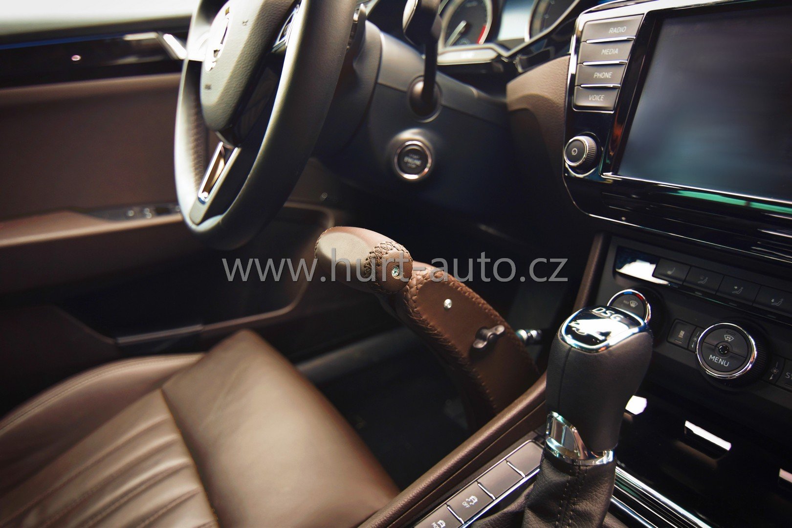Для кращого вигляду ми підготували колекцію кольорових варіантів шкіри, якою можна обтягнути кришки важеля та саму ручку. Шкіра дуже якісна, приємна на дотик. За потреби можна використати і алькантару — матеріал із замшевим, шліфованим ефектом шкіри. Також можна обрати інший колір нитки у порівнянні з кольором шкіри. Для розкішних автомобілів можливе постачання оригінального виконання інтер’єрної шкіри.
